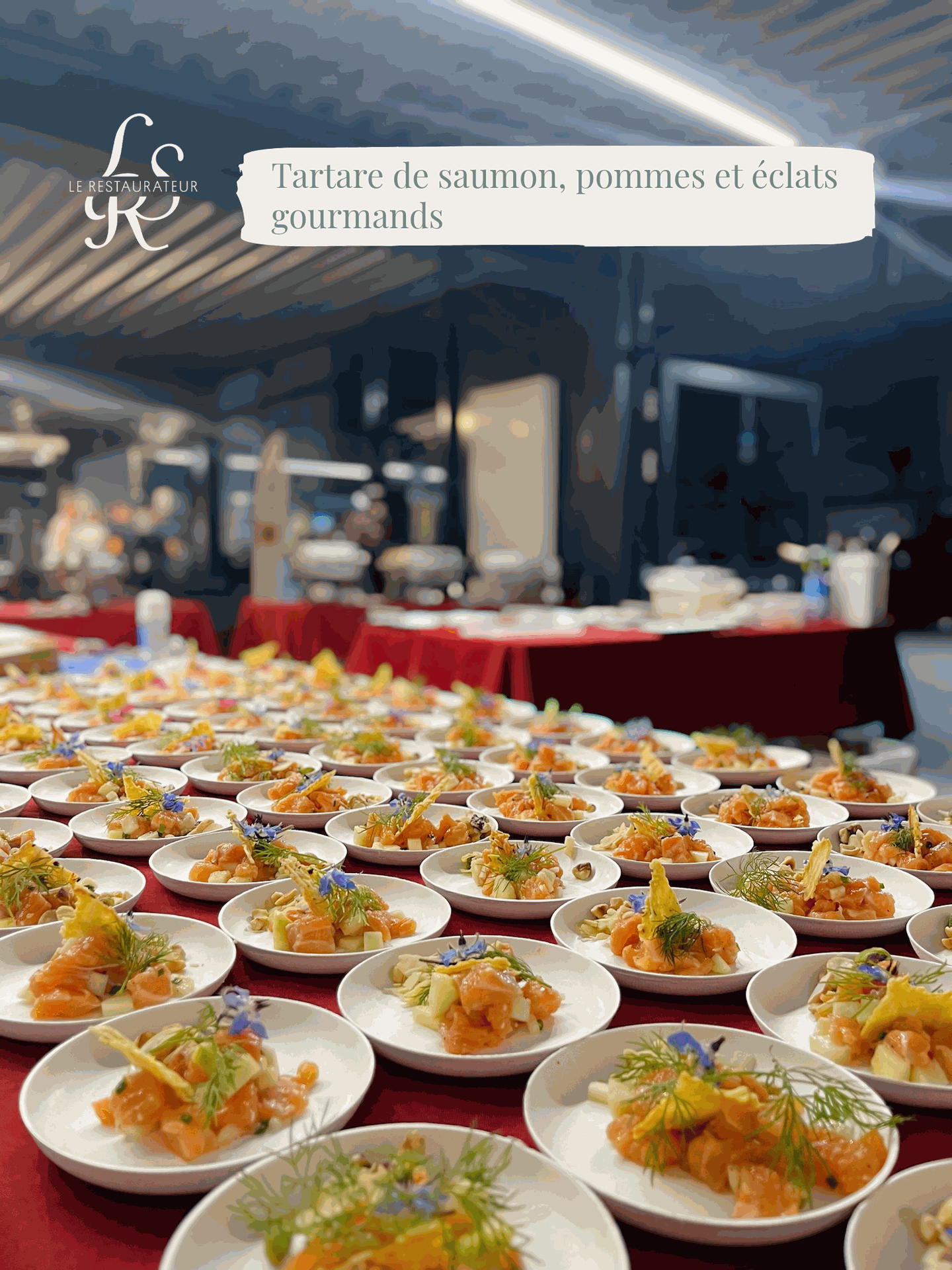 Les portions sont volontairement petites (50 g pour les entrées et desserts, 80 g pour les plats) afin de garantir une dégustation fluide, raffinée et adaptée au format walking dinner